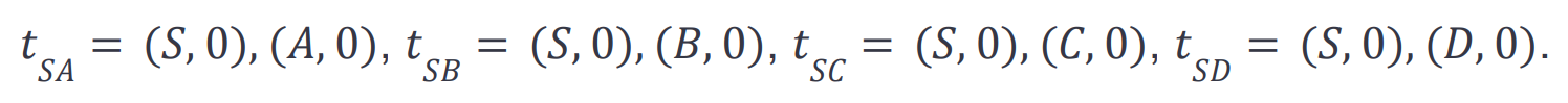 None of them can be scheduled immediately because the nonces of all addresses are set to zero in the initial state. For the adjacent edges of the graph, we have the following transactions,