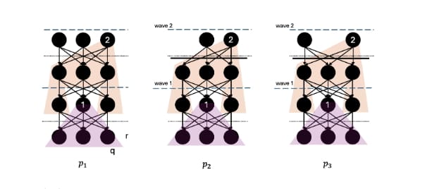 On the other hand, protocols that have a partial synchronous model do not require nondeterminism. Lastly, the structure of the DAG differs between protocols. Hashgraph, for example, unlike the other protocols, does not block in every round to receive 2f+1 nodes; however, it needs to compute special witness nodes to layer the DAG.