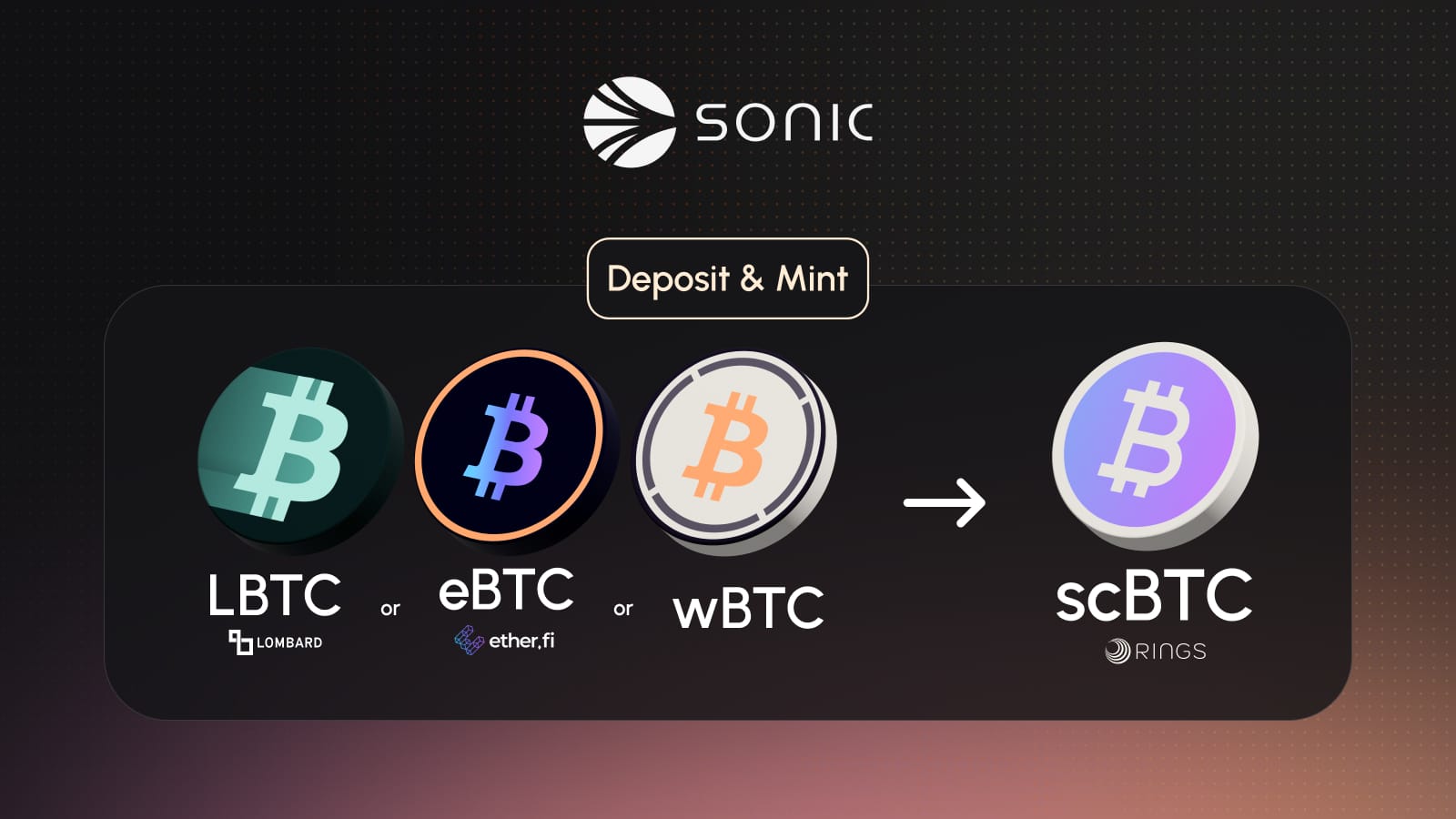 By integrating LBTC, eBTC, and wBTC into scBTC’s collateral pool, Rings Protocol leverages their stability and liquidity to maintain scBTC’s robust peg while unlocking new yield paths on Sonic.