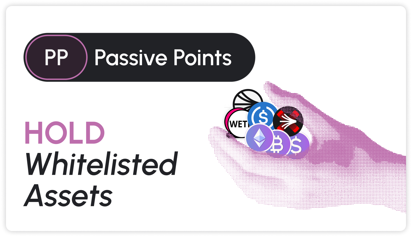 Users can earn passive points by holding whitelisted assets directly in their Web3 wallets, such as Rabby or MetaMask, including hardware wallets. Assets held on centralized exchanges are not eligible.